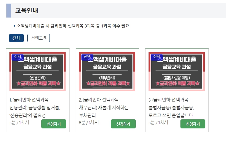 ③ 소액 생계비 대출 시 금리인하 선택과목 3과목 중 1과목을 이수