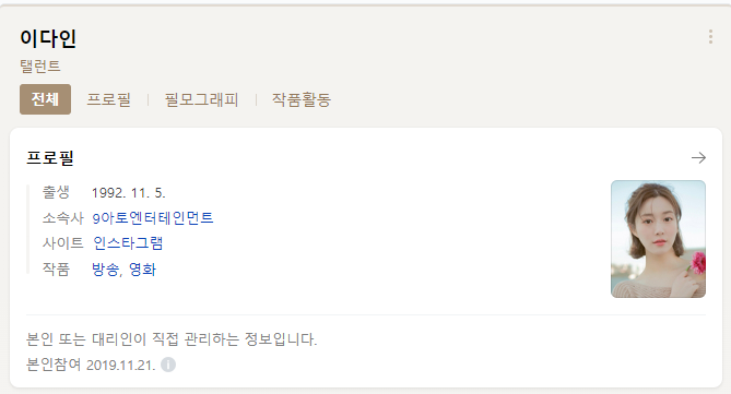 이다인 배우를 잘 모르시는 분들이 있을 것 같은데, 아래 프로필 & 사진 참고 바랍니다.